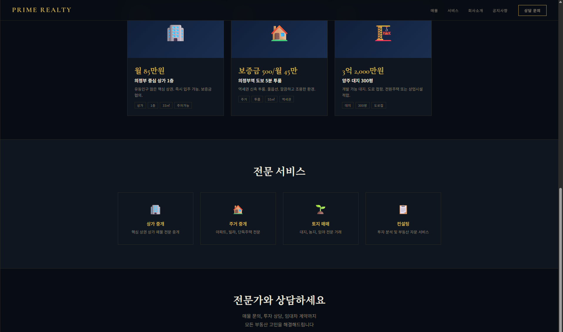 샘플 보기 →고급스러운 다크+골드 계열의 프리미엄 부동산 전용 디자인.